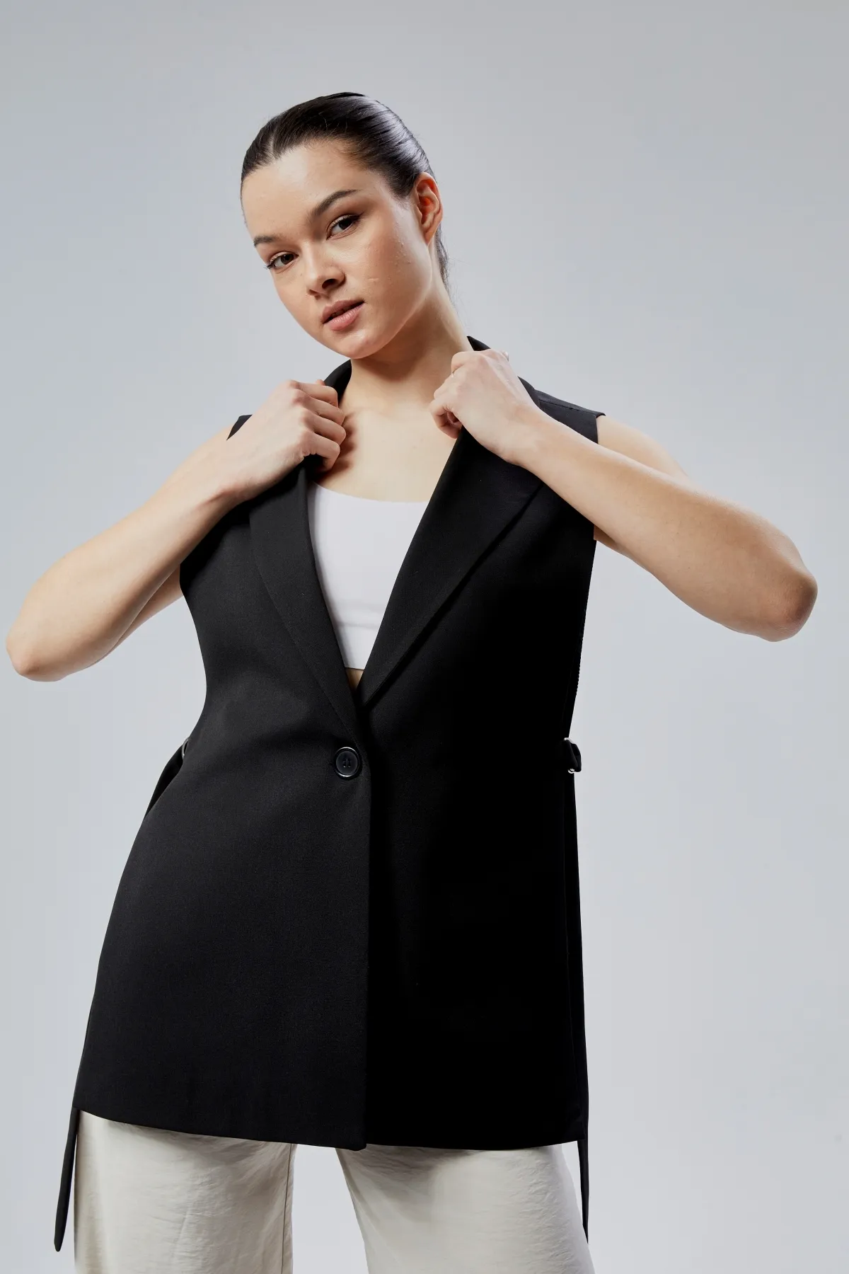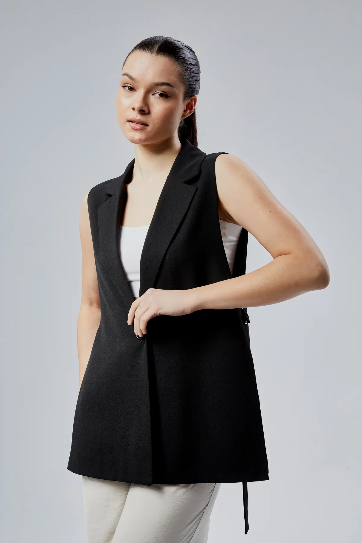 Kadın Siyah Dokuma Yelek XS-S-M-L-XL-XXL